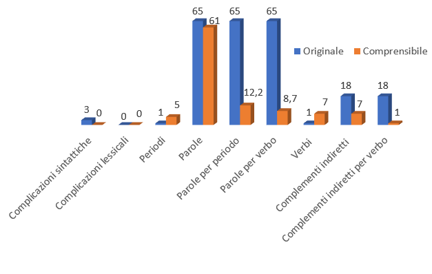 - i KPI della chiarezza linguistica (parole per periodo, parole per verbo, complementi indiretti per verbo ecc.).