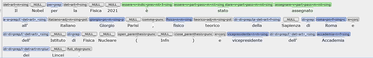 La funzione più precisa del NLP è, come dicevo, quella di descrivere la struttura linguistica. Due esempi.